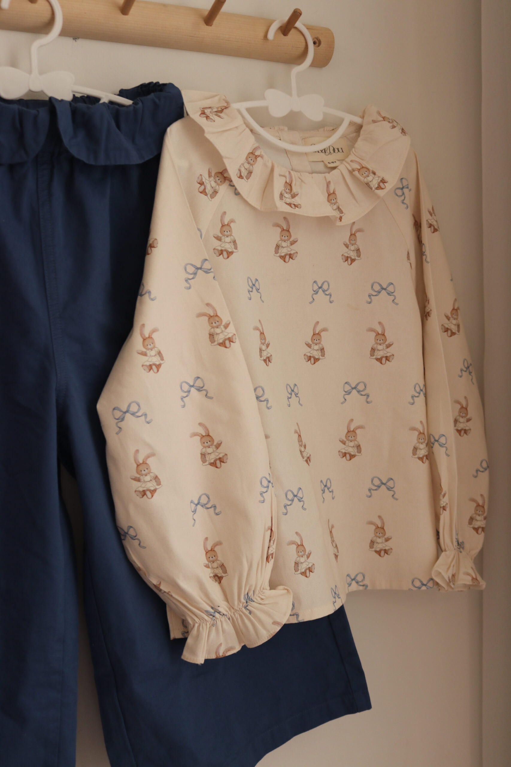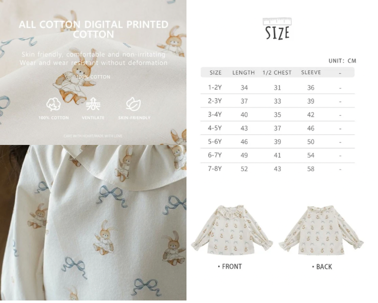 بلوزة بكم طويل بطبعات أرانب مصنوعة من القطن الطبيعي 100%
